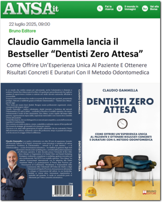 In un mondo che cambia sempre più velocemente, anche l’odontoiatria è chiamata a evolversi. Dentisti Zero Attesa è più di un libro: è la guida per quei professionisti che vogliono smettere di sopravvivere e iniziare a costruire uno studio davvero autorevole, efficiente e riconoscibile.